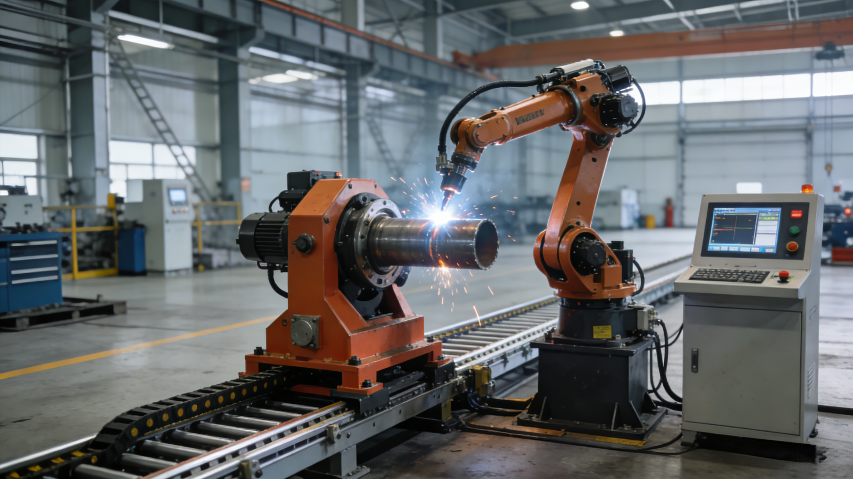 自动化焊接设备向柔性化、协同化延伸,协作移动机器人可灵活适配狭窄空间、复杂工况。在工程机械、新能源汽车等领域,变位机与机器人联动系统大幅提升产能与焊接精度,支撑产业高质量发展。